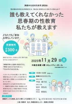 地域全体でこども達の未来を育むために、舞鶴市の産婦人科医、助産師から思春期の性の正しい知識や家庭でできる性教育の方法までわかりやすく教えていただきます。