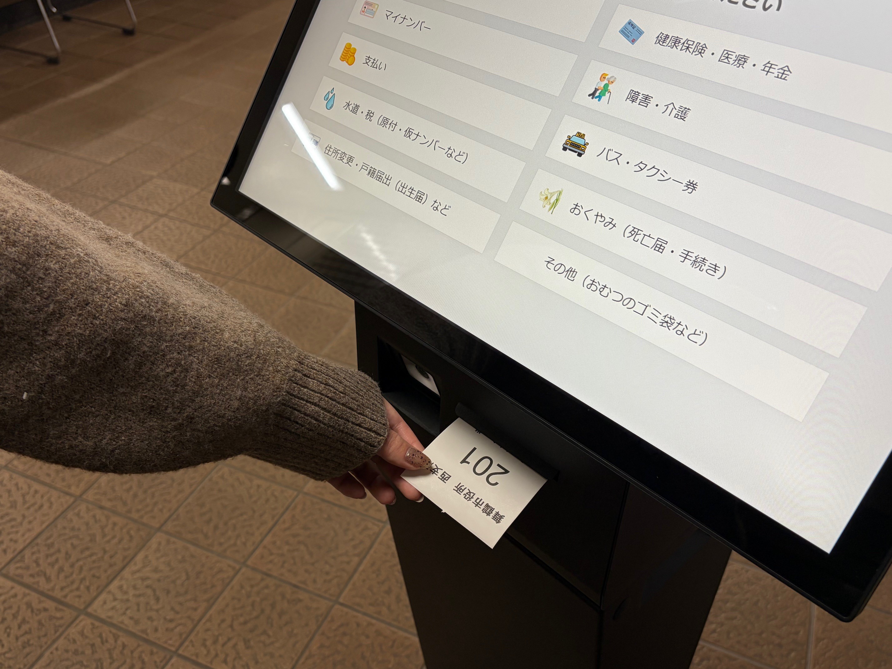 タッチパネルでご用件のメニューを選んでいただくだけで簡単に受付が完了!