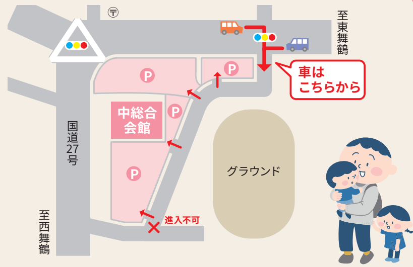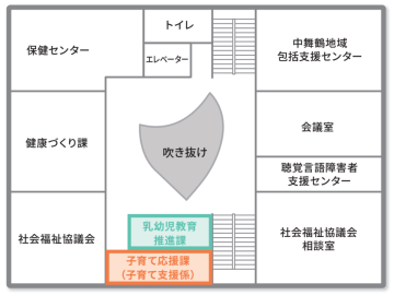 5月7日以降、子育てに関する手続きや相談は「中総合会館」へお越しください。