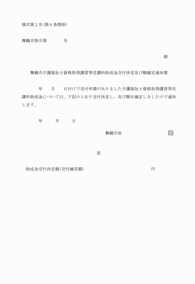 ○舞鶴市介護福祉士資格取得講習等受講料助成金交付要綱