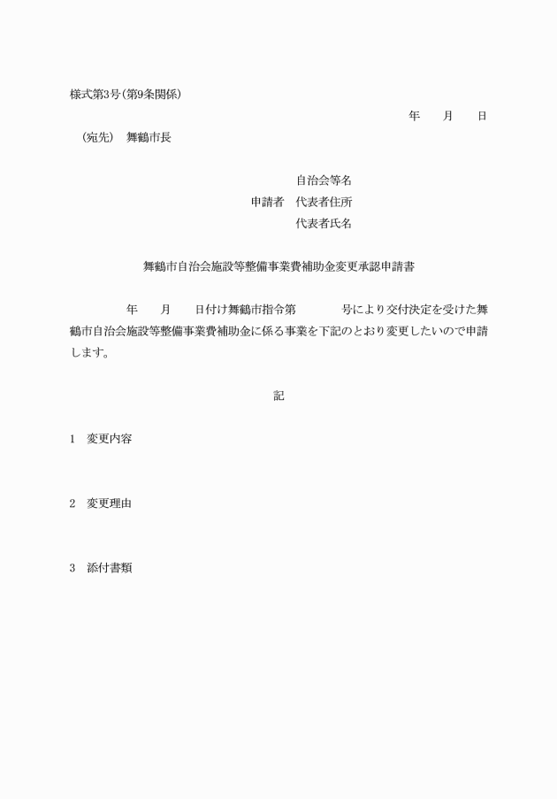 ○舞鶴市自治会施設等整備事業費補助金交付要綱