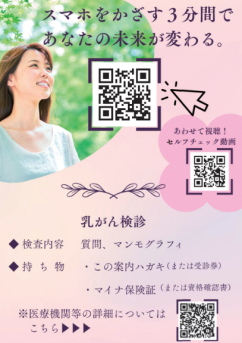 40歳以上の女性で、令和6年度に市の乳がん検診を受診していない方