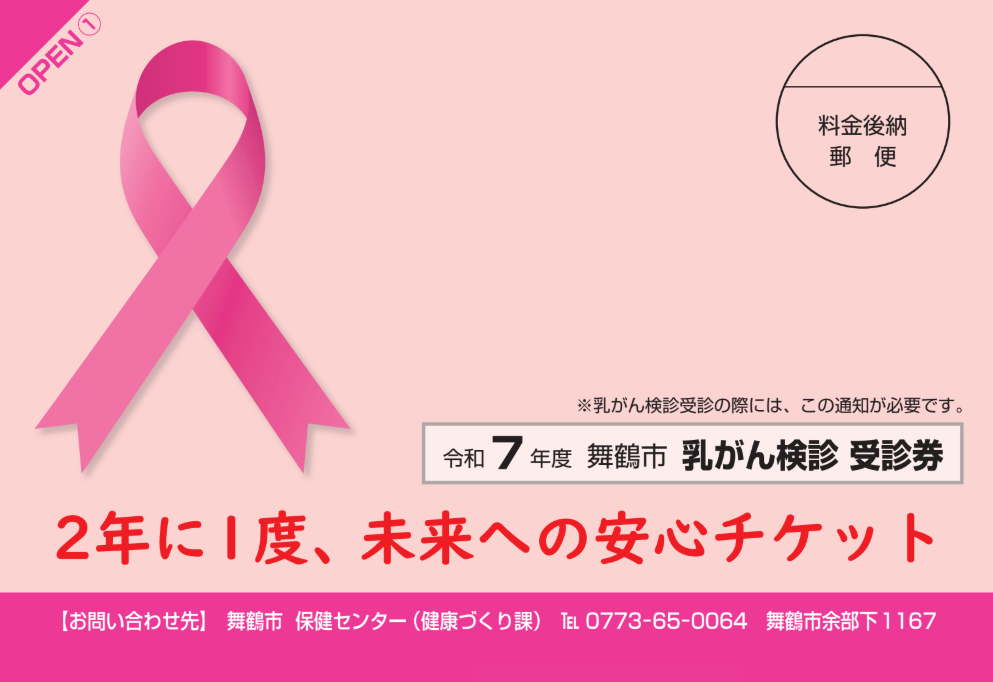 ・舞鶴市乳がん検診受診券、無料クーポン券、または市からの案内ハガキ(いずれか1点)