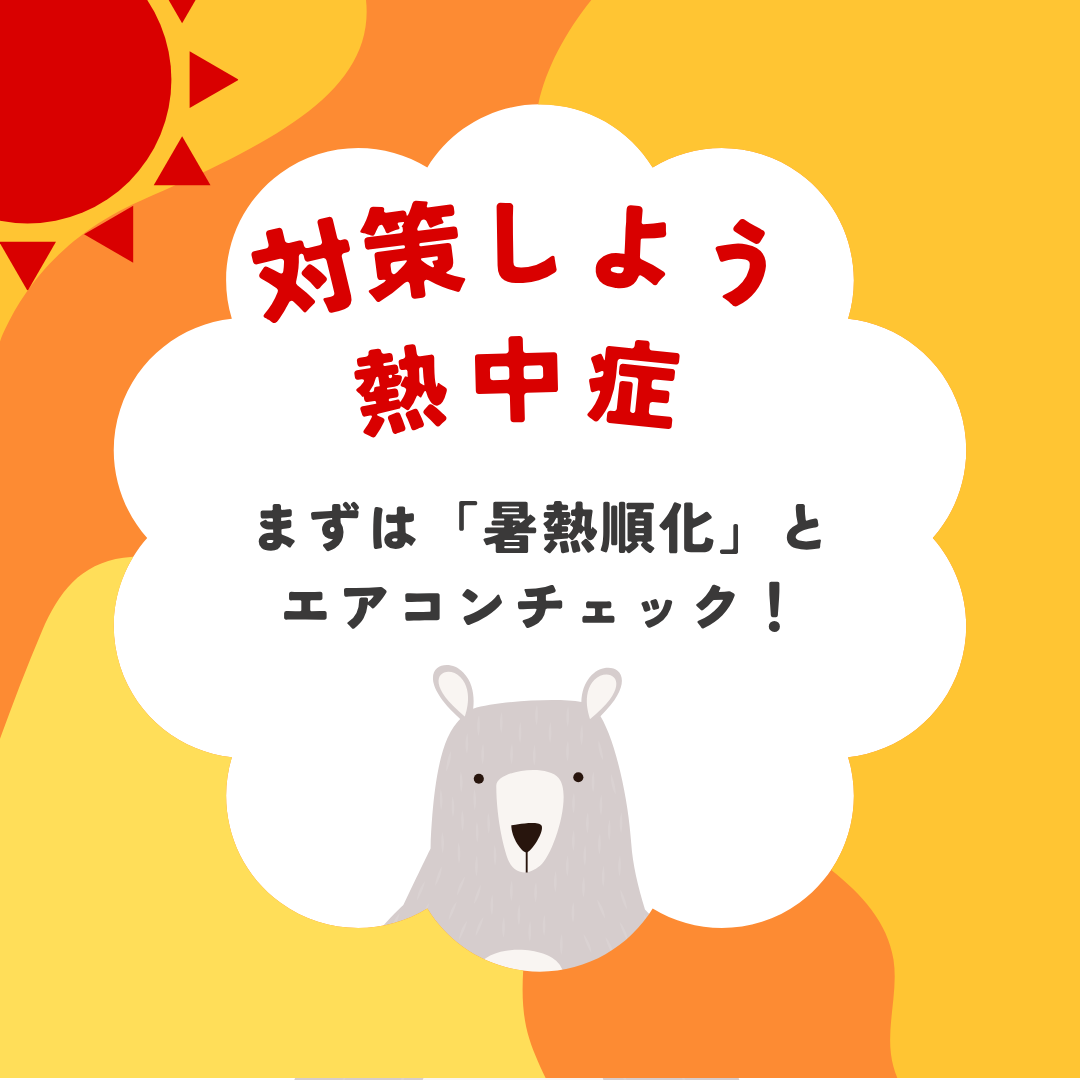 また、暑くなる前の時期から、自宅等の空調設備が使用可能かどうか動作確認や試運転 を行ってください。