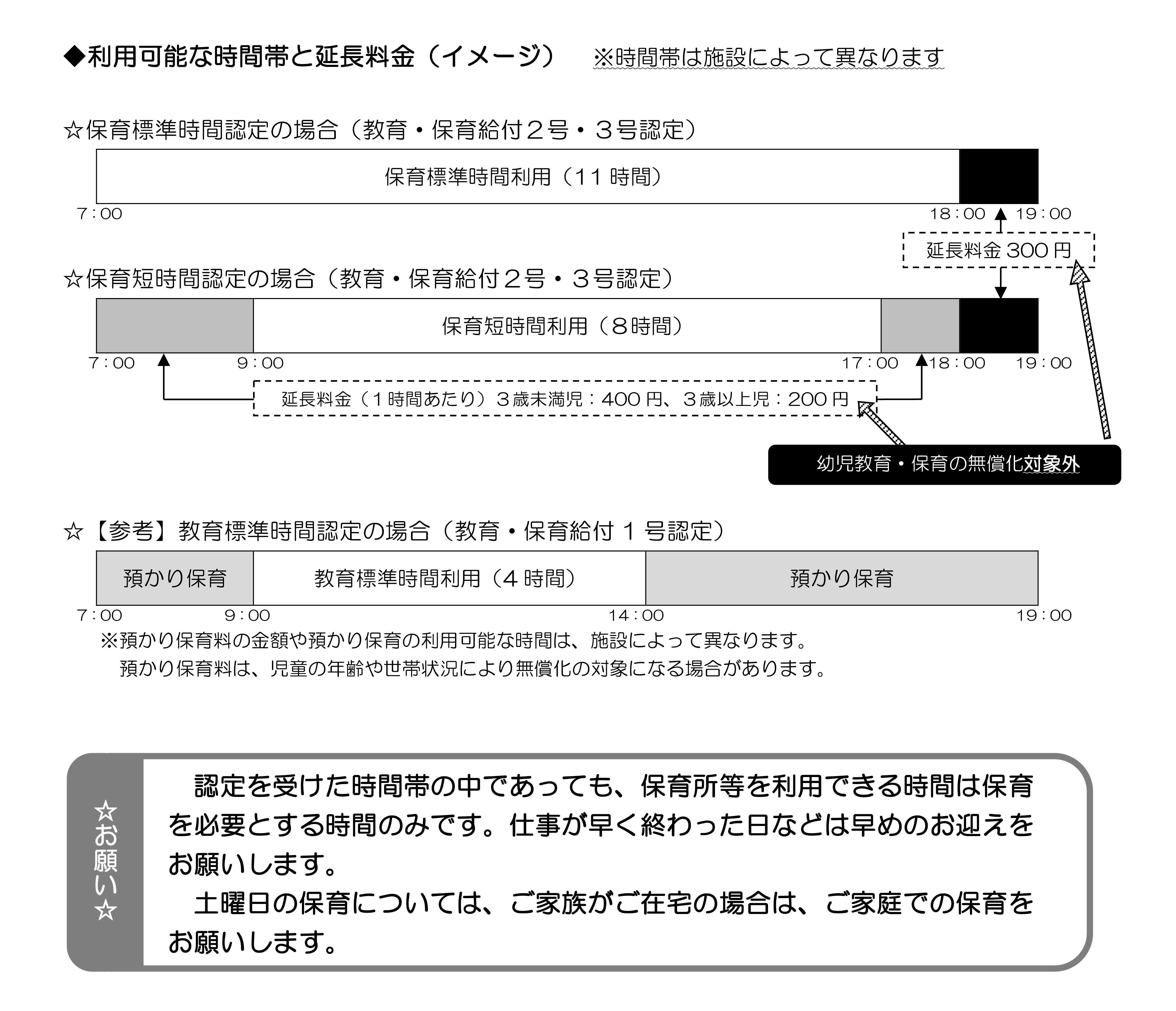 なお、延長保育の料金については、幼児教育・保育の無償化の対象外です。