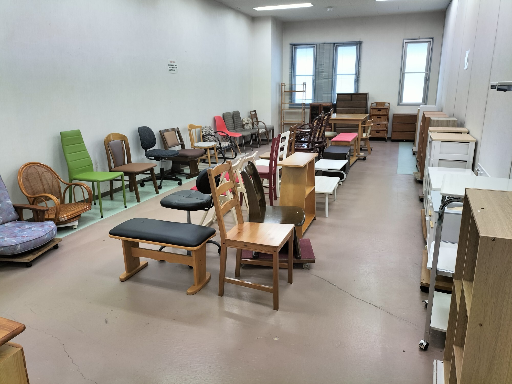 舞鶴市では、3Rの取り組みの一環として、粗大ごみの中から、まだ使える家具等を施設内のリサイクル工房で再生し、展示・販売しています。