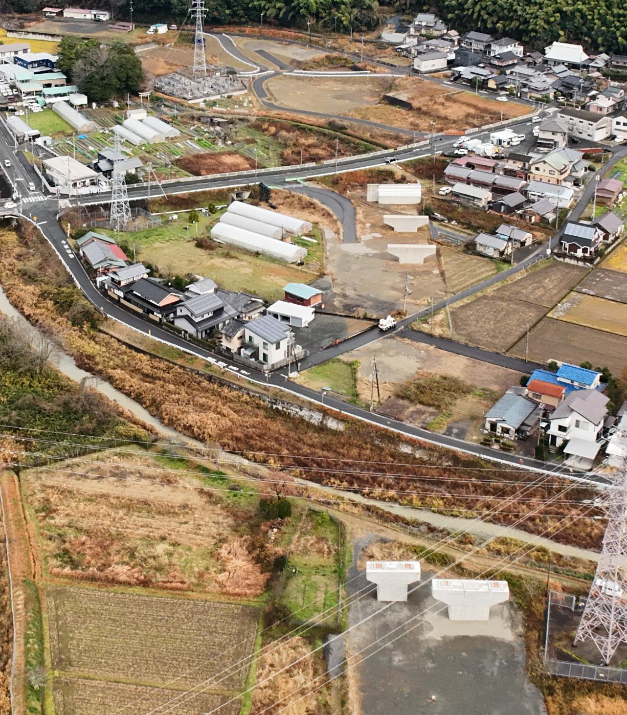 トンネルとトンネルの間の区間で、市道の付替が完了しました。