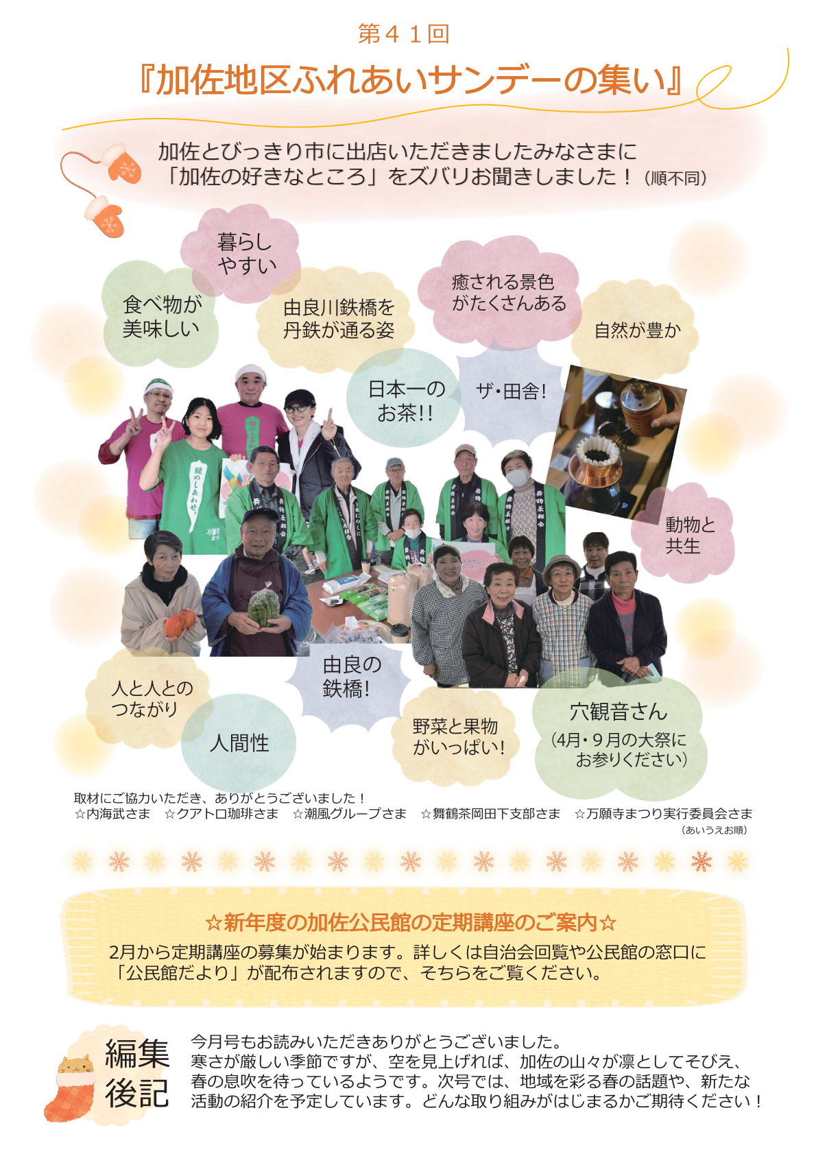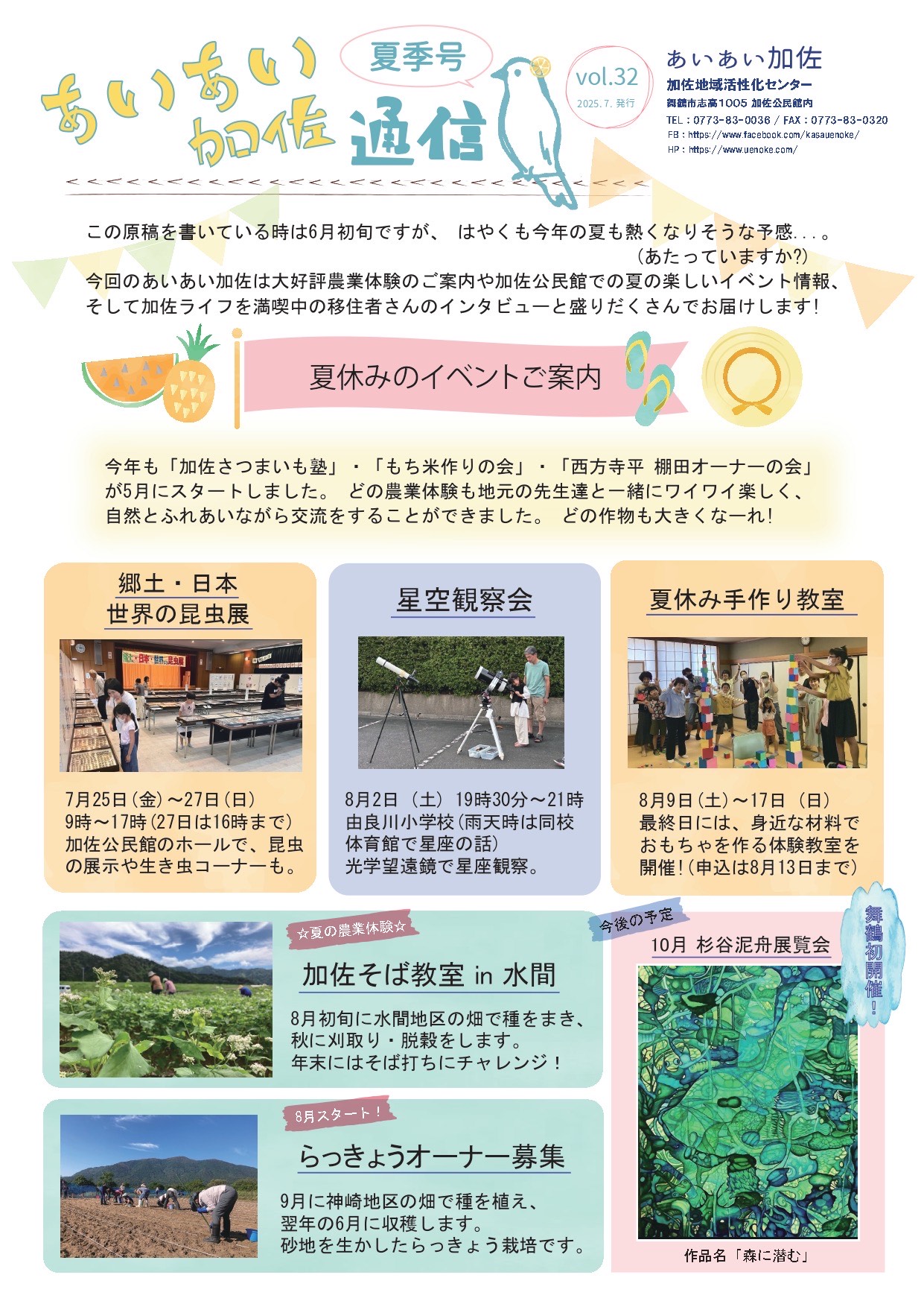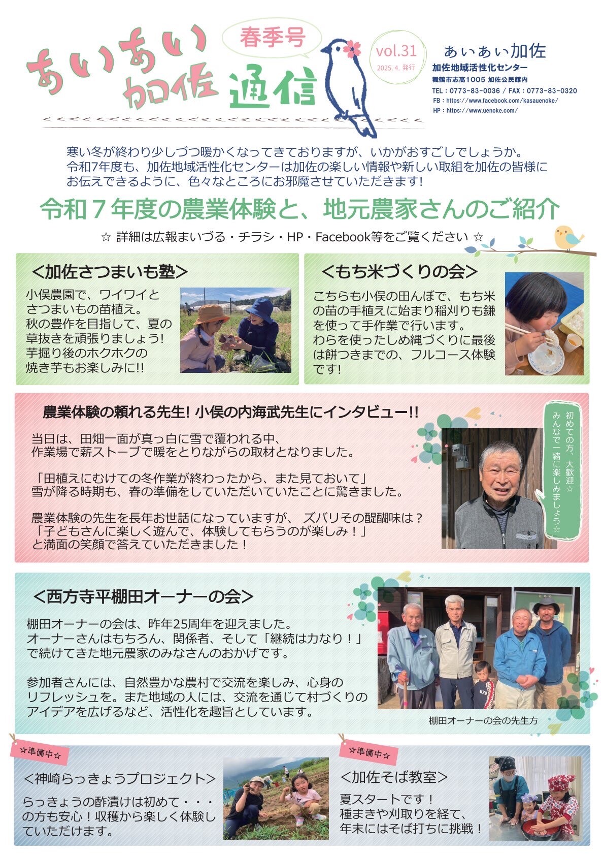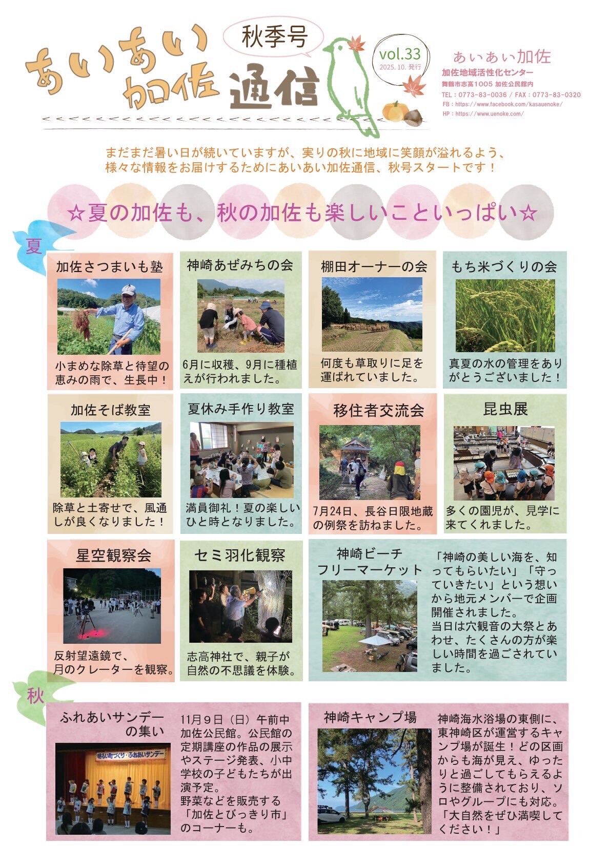 公民館事業や農業体験など、最新のイベントは「あいあい加佐」ホームページへ(別ウインドウで開く)