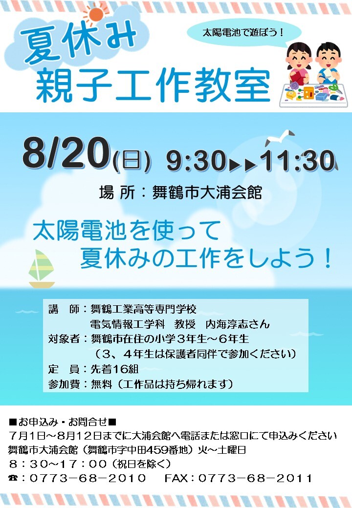 7月1日~8月12日までに大浦会館へ電話、または窓口にて申込みください(先着順)
