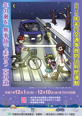 12月1日(月)~10日(水)まで、「年の瀬を 無事故で走ろう 京の道」をスローガンに、「年末の交通事故防止府民運動」が実施されます。