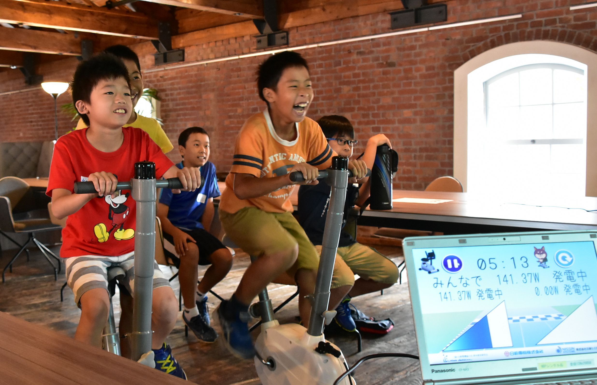 ・日新電機(株):足こぎ発電でどれだけ電気がつくれるかな?