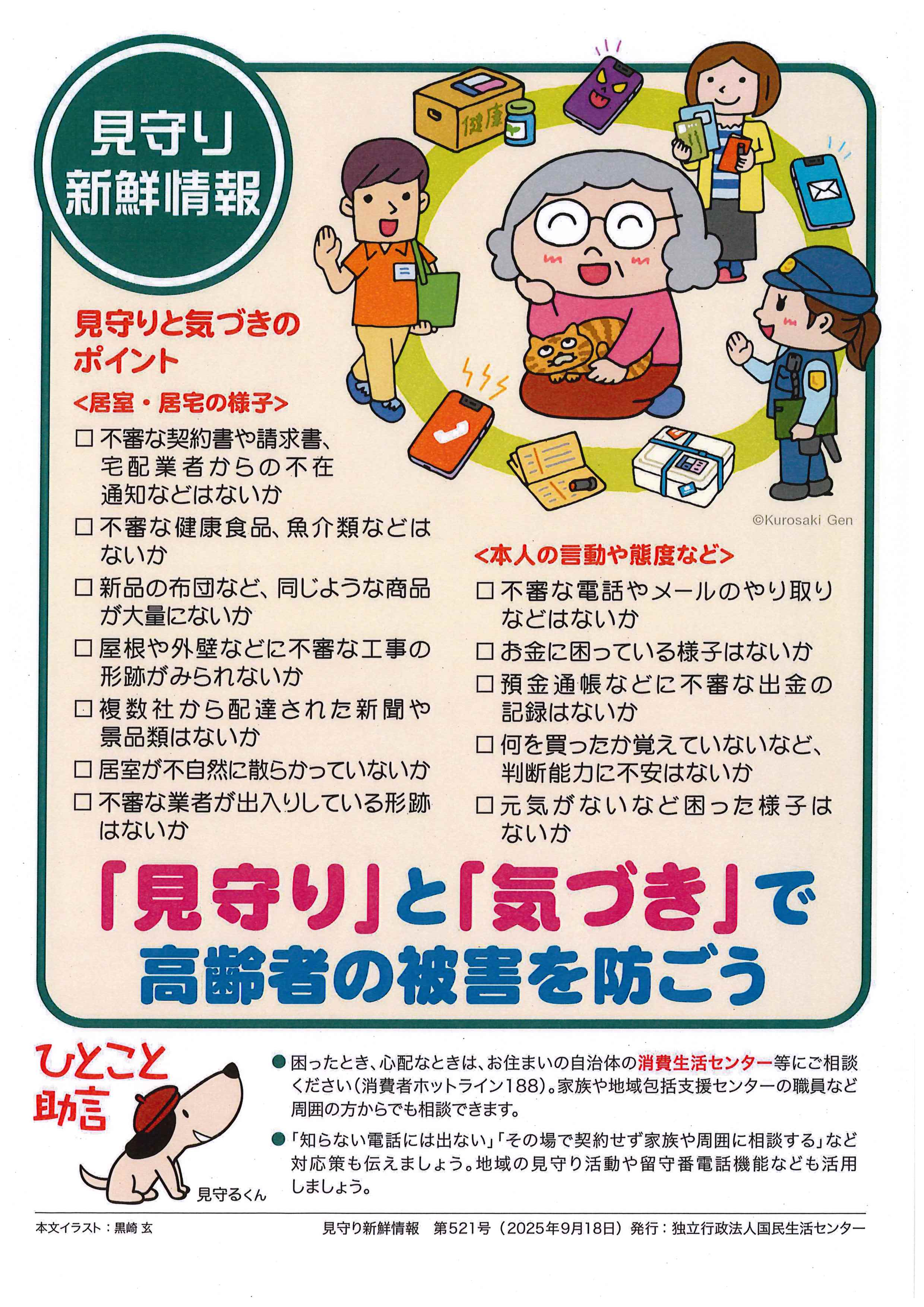 下記の国民生活センターのチラシにあるチェックリストを活用し、ご高齢の方の生活をみんなで見守りましょう。