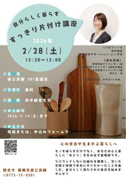 西公民館で、下記の通り「すっきり片付け講座」を開講いたします。