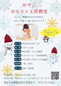 西公民館で、下記の通り「おやこおもちゃ工作教室」を開講いたします。
