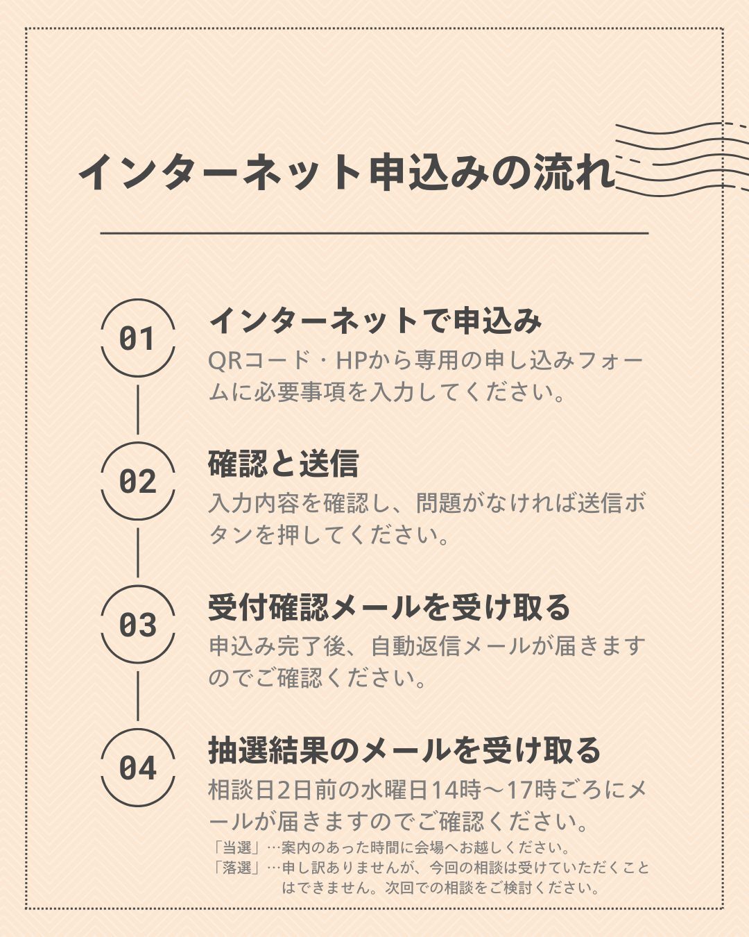 ●お申込みには、氏名、年齢、住所、電話番号、相談内容などが必要です。