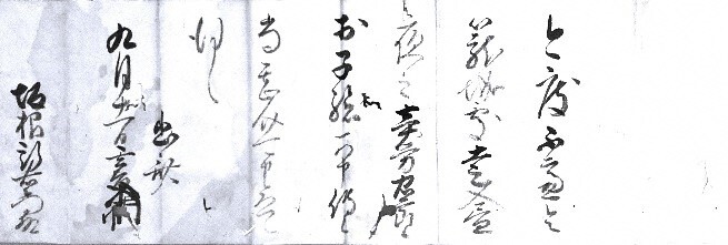 この「幽斎感状」は、田辺籠城戦で開城前日の9月11日に籠城に駆け付けた今田村の坂根新右衛門に対して労をねぎらう言葉がかけられています。