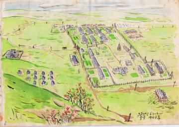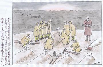 昭和55年(1980)ごろから翌年にかけて自身の抑留体験を説明書きを入れて描いた。