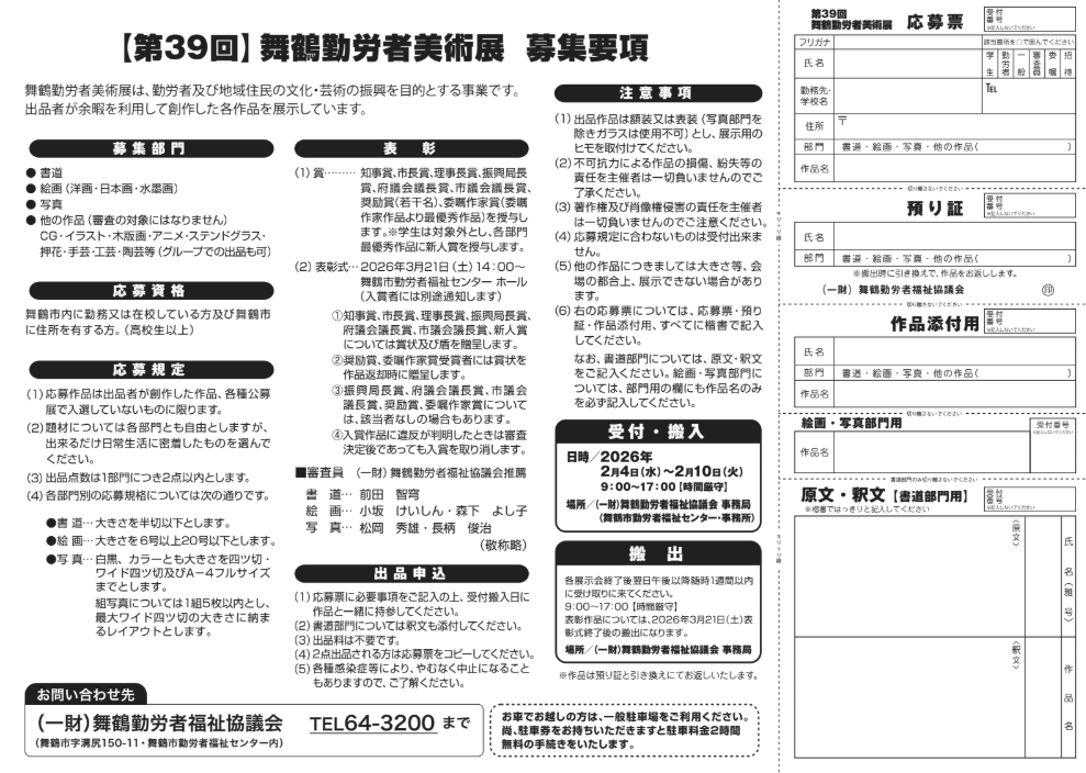舞鶴勤労者美術展は、勤労者及び地域住民の文化・芸術の振興を目的とする事業です!