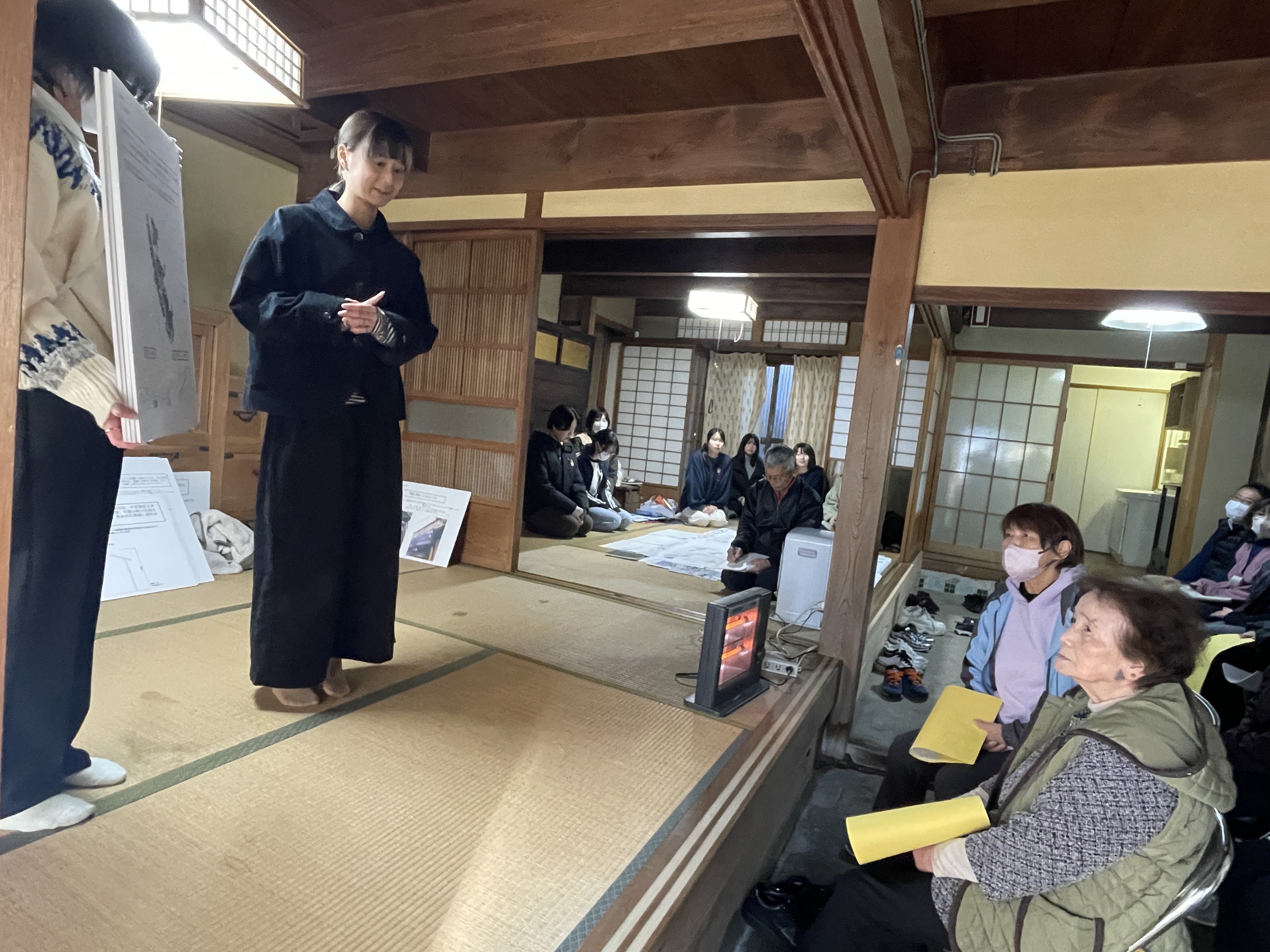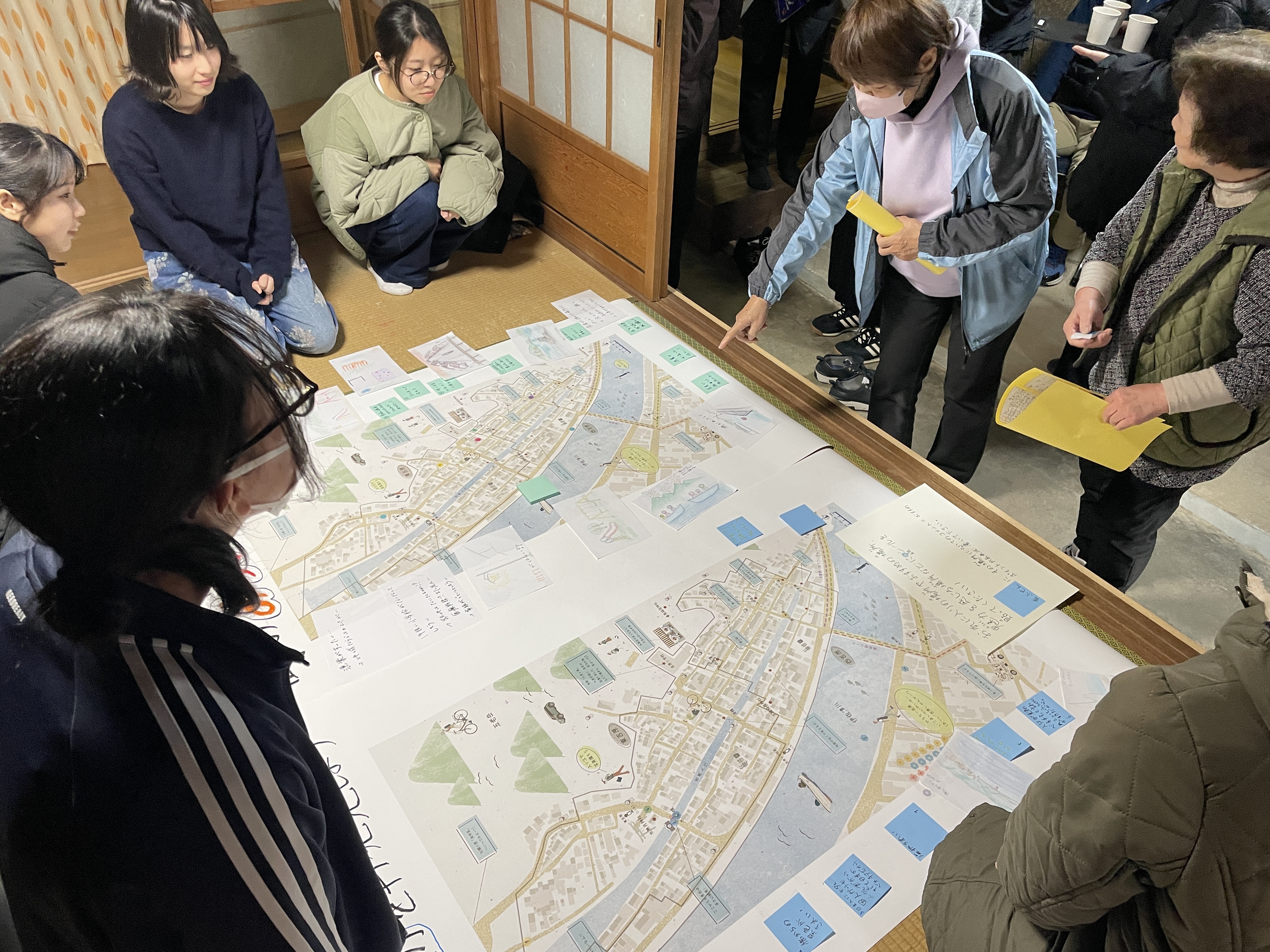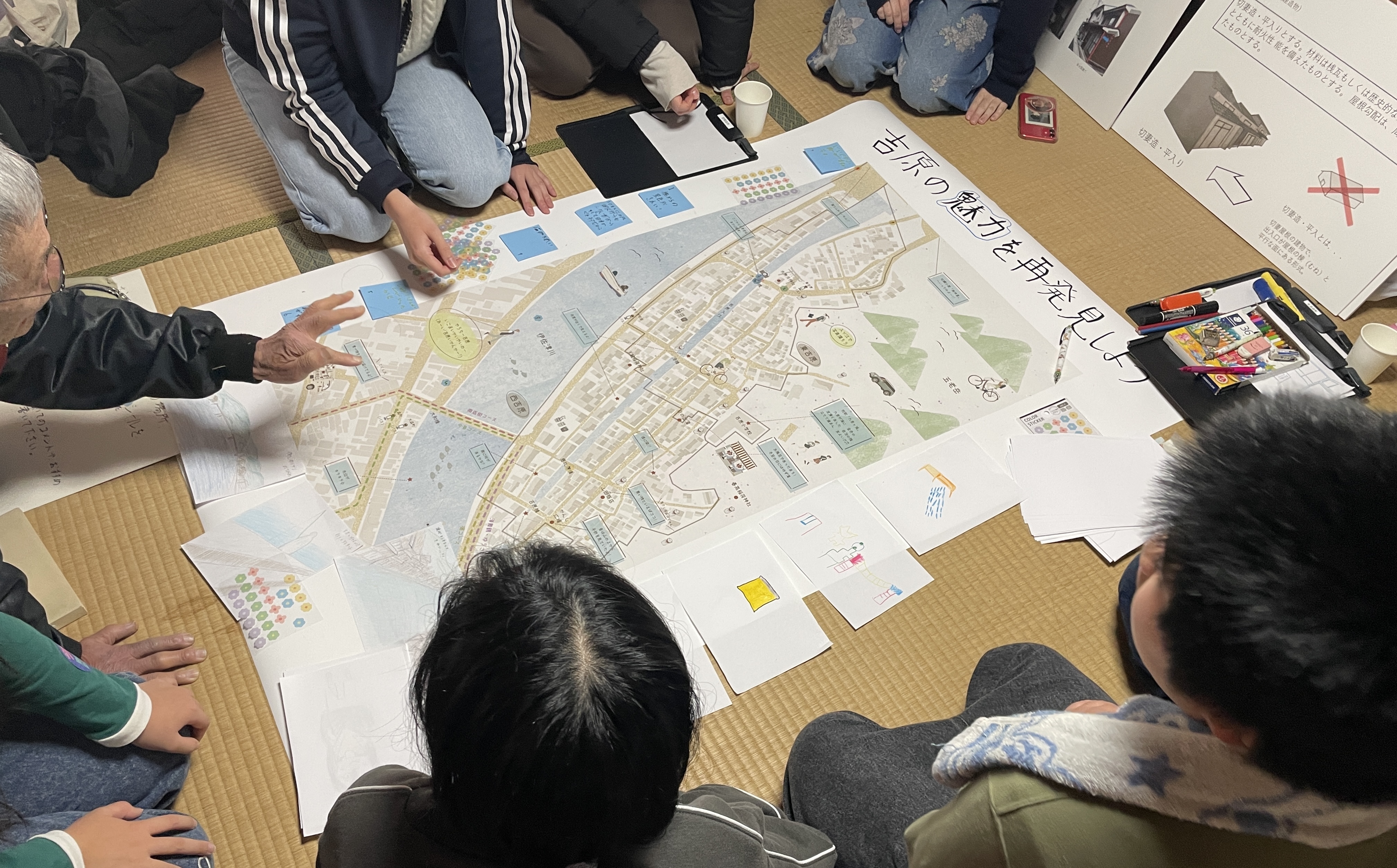 吉原伝統的建造物群保存地区選定に向けた取り組みの一環として、住民参加型ワークショップ「吉原活用アイデア会議」を開催しました。会場には吉原地区に残された伝統的建造物を使用し、長年吉原地区の建物・景観の調査を行ってきた京都女子大学による協力のもと、開催しました。