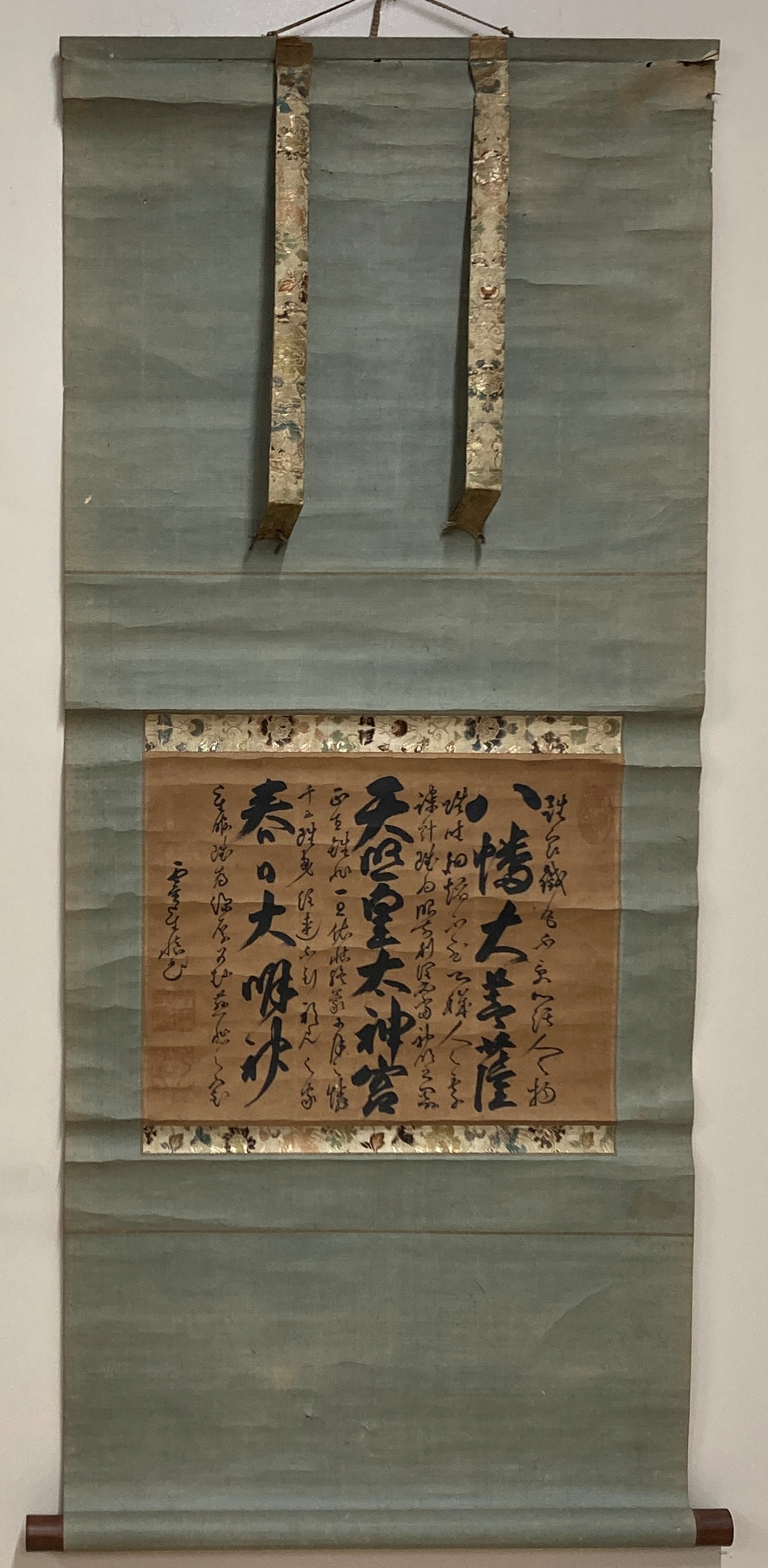 1月の城下町コーナーでは城下町の商家でお正月に飾られた掛け軸を展示します。西地区の竹屋には高野川の水運を利用して商家が立ち並んでいます。その竹屋に店を構え酒屋や油屋などで栄えた近藤家に伝来した正月の掛け軸をご紹介します。