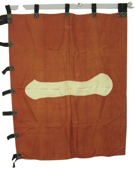 牧野家の初代親成が田辺へやってきたのは寛文8(1668)年。畿内を徳川の譜代大名で固める政策によって、京都所司代から田辺藩主となりました。親成のおじいさん康成やお父さんの信成は徳川家康に仕え、馬とともに数々の戦場を駆け巡りました。元禄13(1700)年頃の牧野家文書『武具式様図』によると、この旗は「一」から「五」まであります。