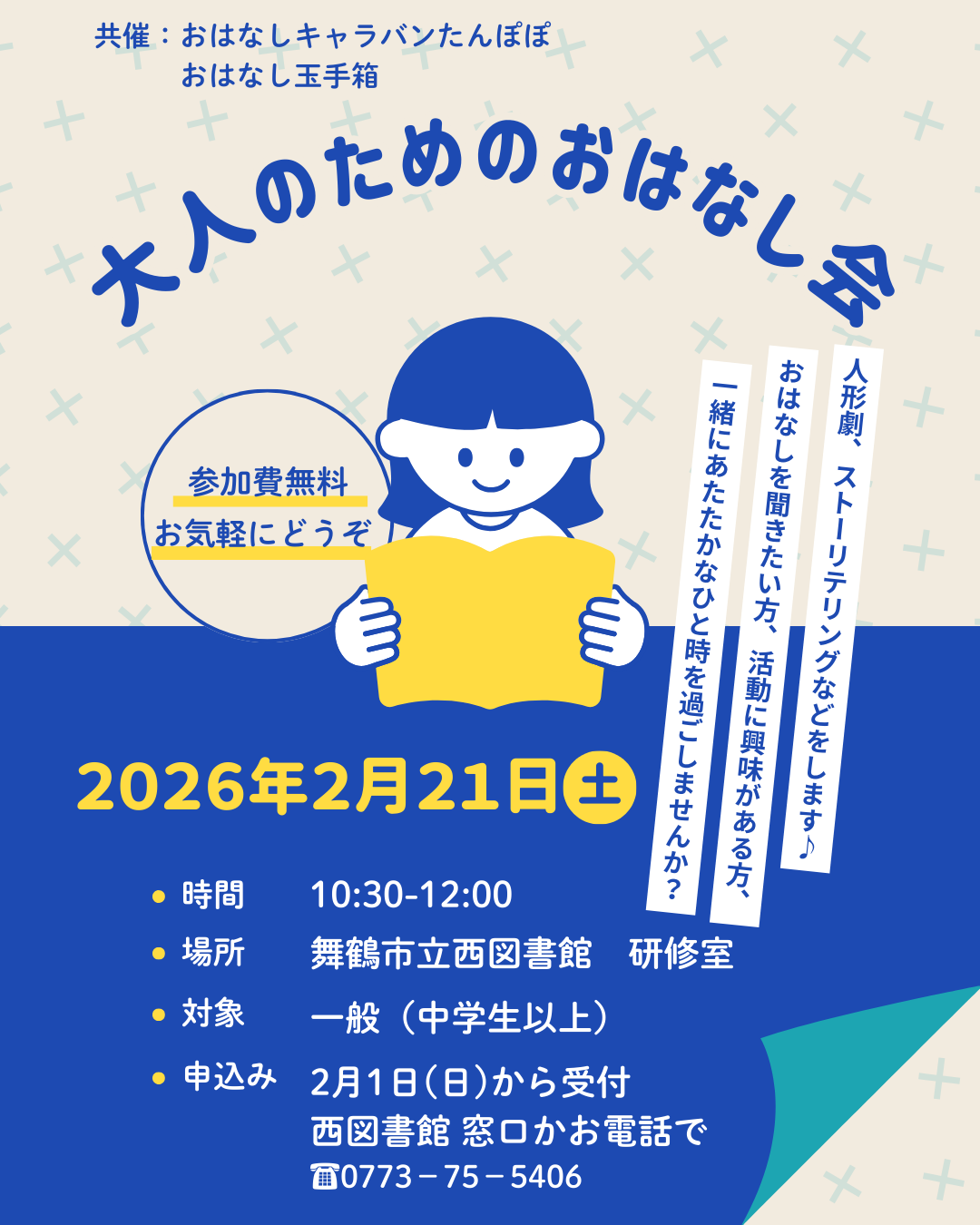 中学生以上の方なら、どなたでもお気軽にご参加いただけます。温かい物語の世界へ、ぜひ遊びに来てください。