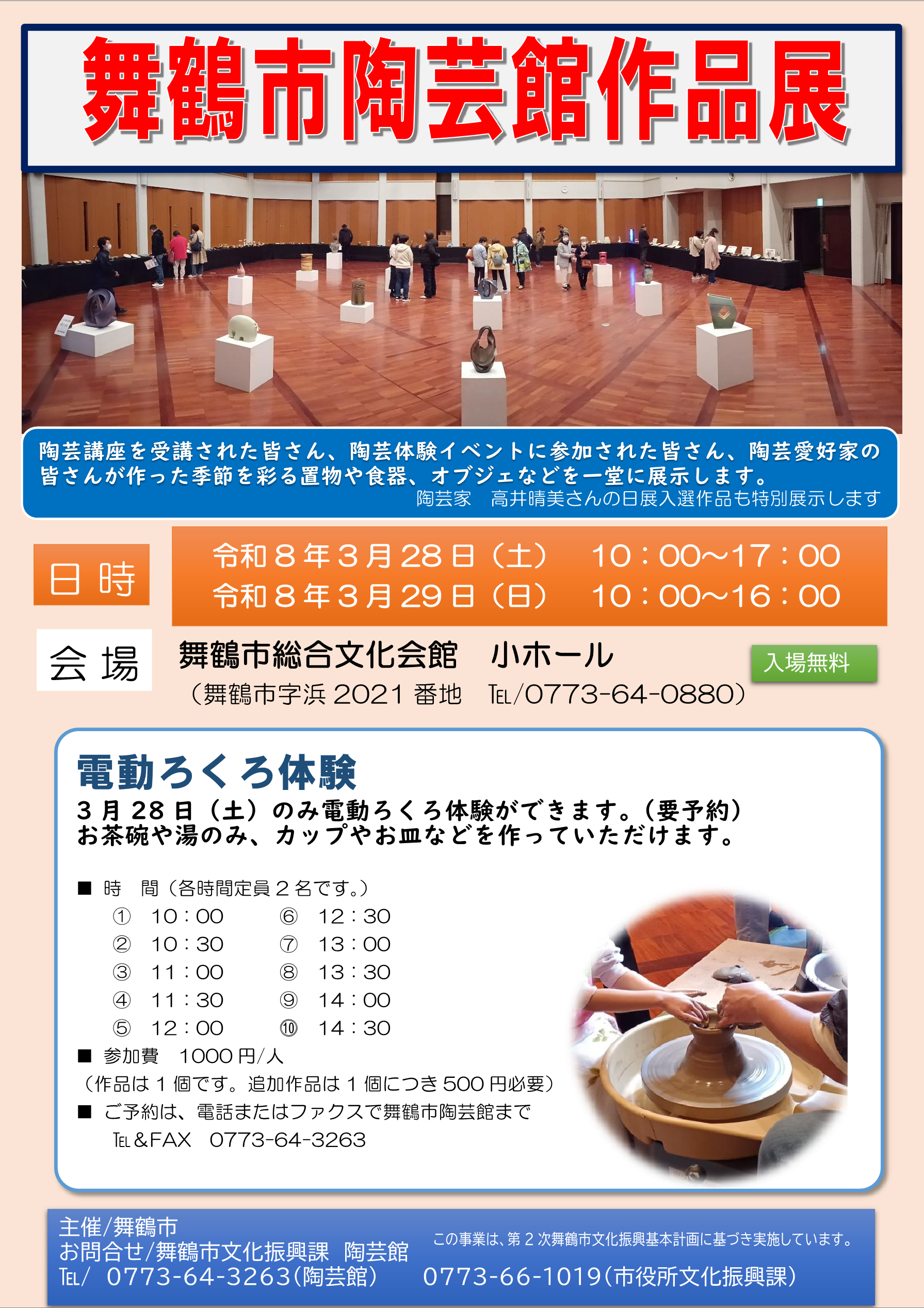 また3月28日(土曜日)には、ろくろ体験(要予約・先着順)も行います。