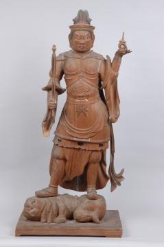 △興禅寺毘沙門天立像。カヤと思われる木で作られており、彩色や金箔はほぼ使わずに仕上げられています。
