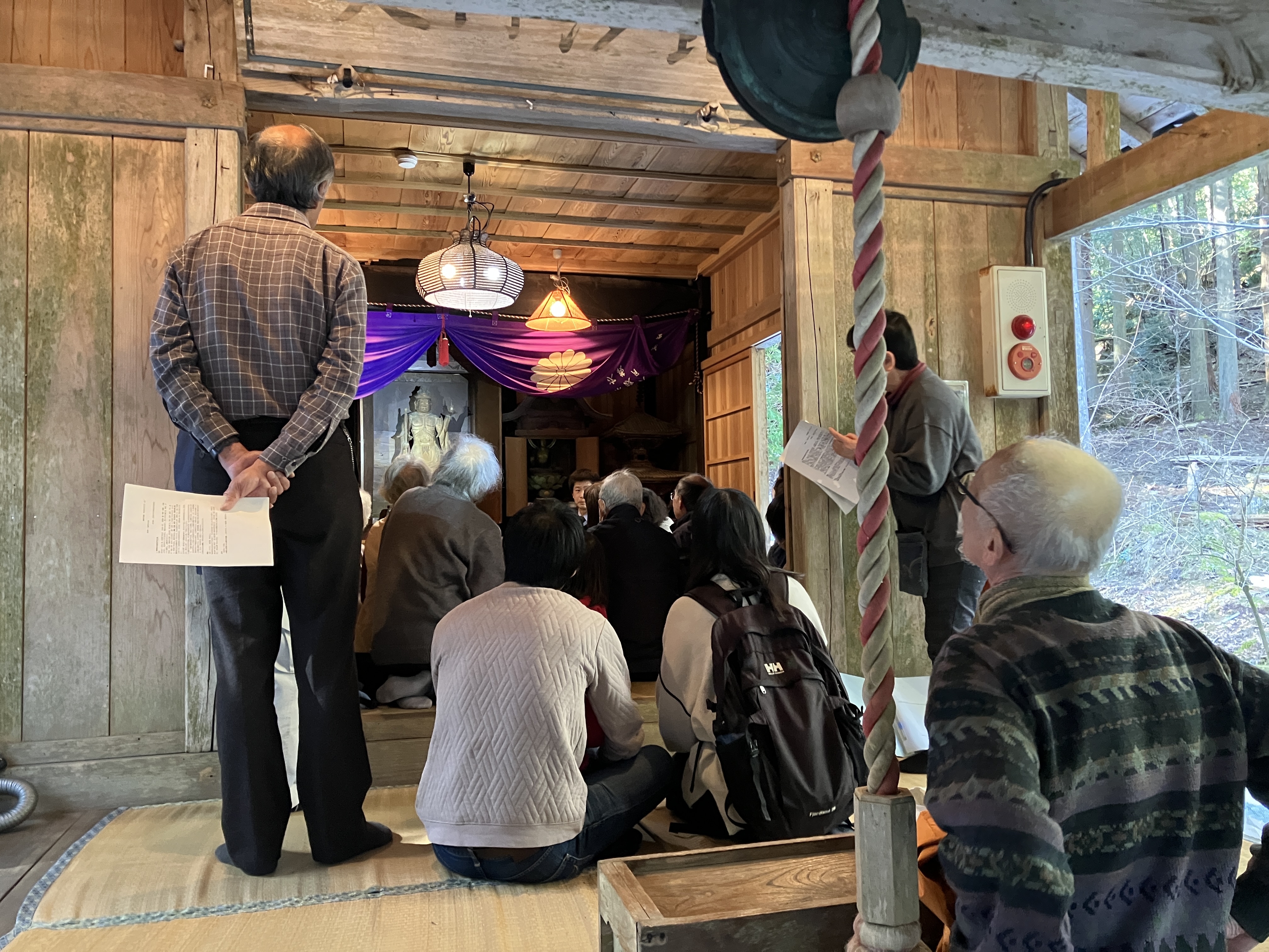△お堂の中で解説を聞きます(お像は画面のほぼ中央に写っています)。