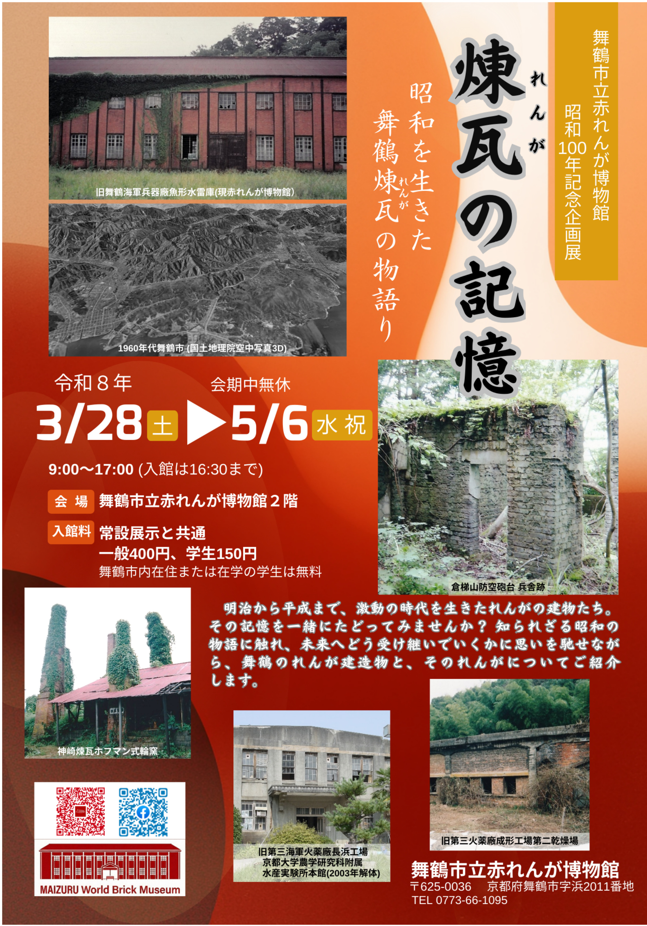 赤れんが博物館では、昭和100年を記念した企画展「煉瓦の記憶 ― 昭和を生きた 舞鶴煉瓦の物語り」を開催いたします。