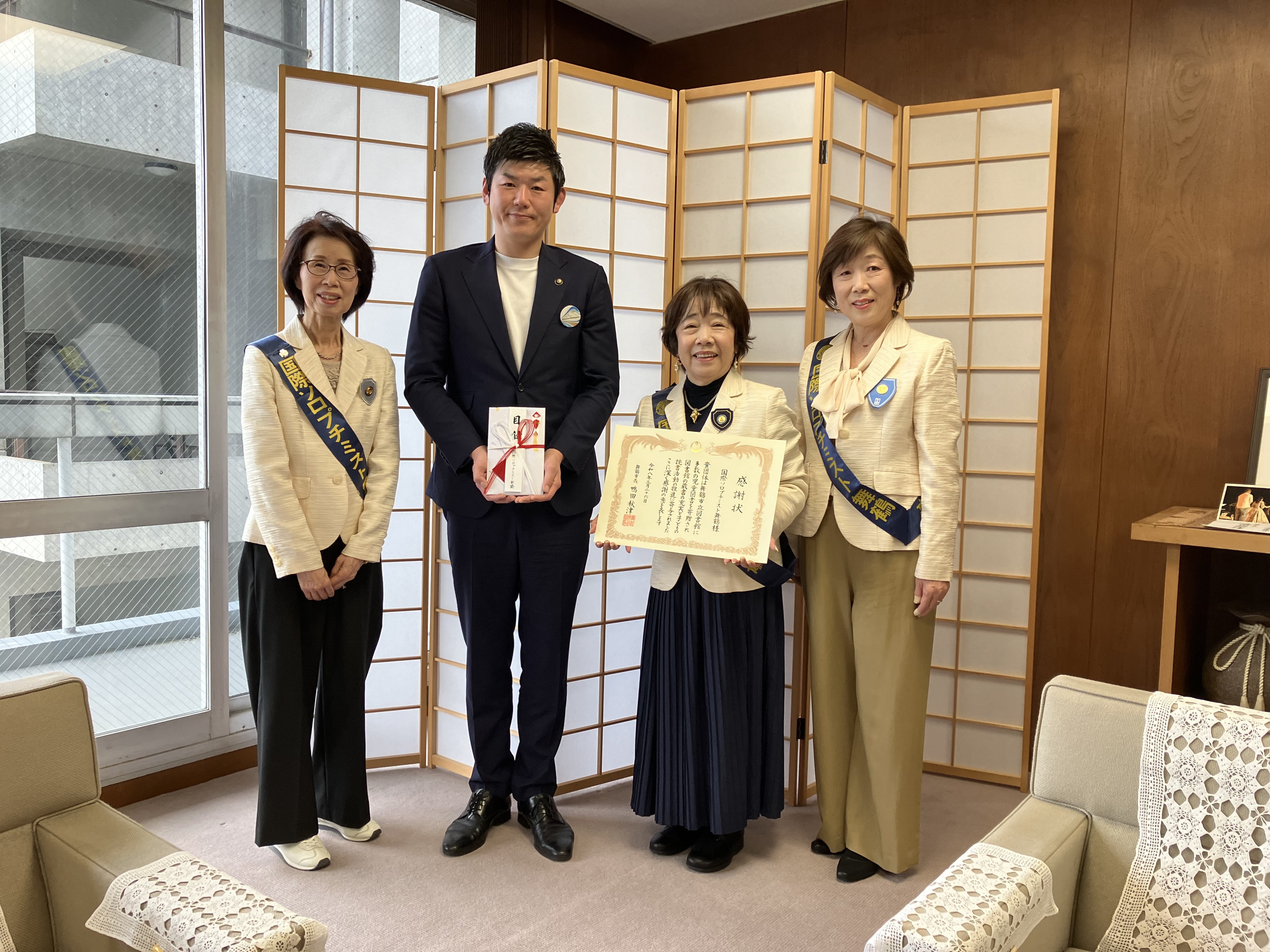 国際ソロプチミスト舞鶴様は、昭和58年から継続して舞鶴市⽴図書館に児童書を寄贈してくださっており、累計冊数は5,025冊(668万円相当)となりました。 3⽉26⽇に⽬録贈呈式が⾏われ、鴨⽥市⻑から感謝状を贈りました。