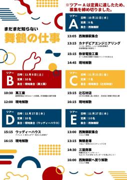 各ツアーの内容については、ちらしのツアースケジュールをご確認ください。