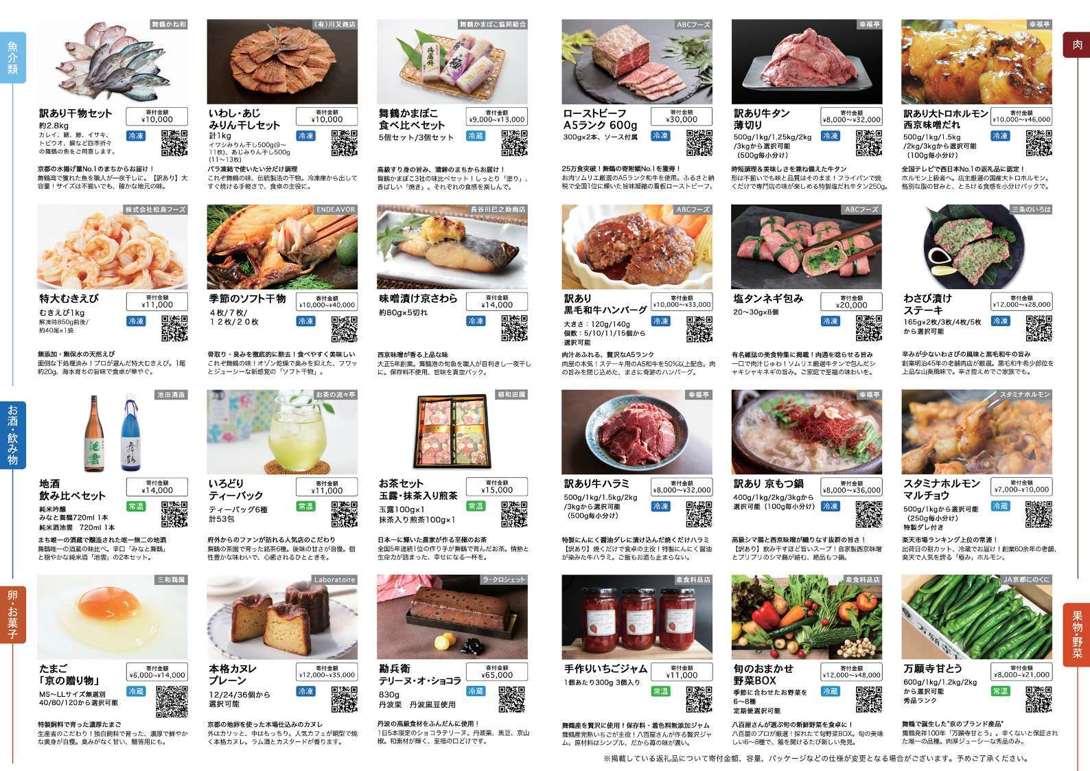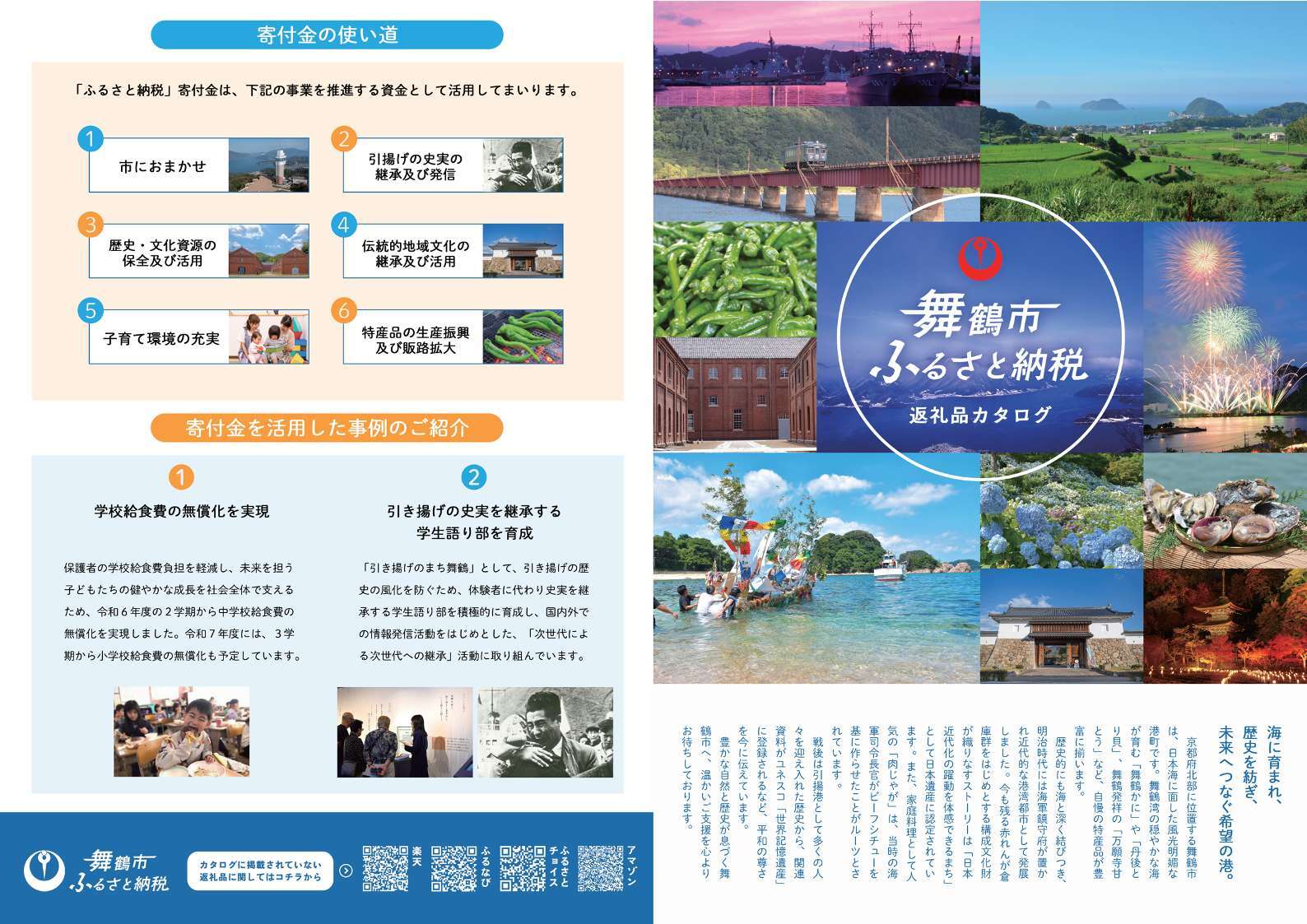 寄附者様から熱い支持を集めるローストビーフ、ホルモン、かまぼこ等の殿堂入りグルメから、食卓を華やかに彩る新鮮なむきえび、そして自分へのご褒美にぴったりのスイーツまで、舞鶴が誇る「特別な逸品」をパンフレットにまとめました。