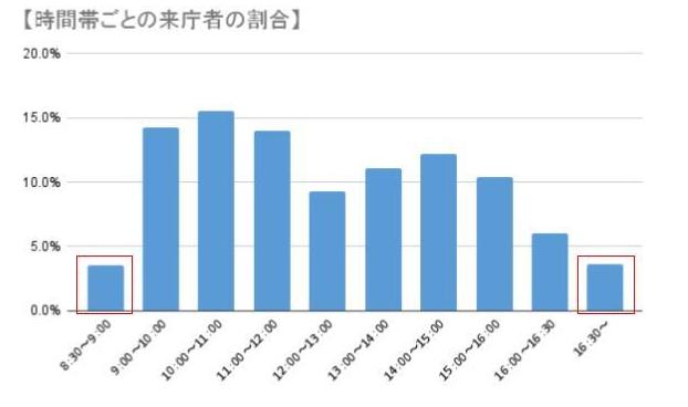 【A9】来庁者数調査の結果に基づいて決定しました。来庁者の約9割の方が利用される時間帯は維持し、比較的に利用者が少ない朝と夕方の時間帯を短縮します。