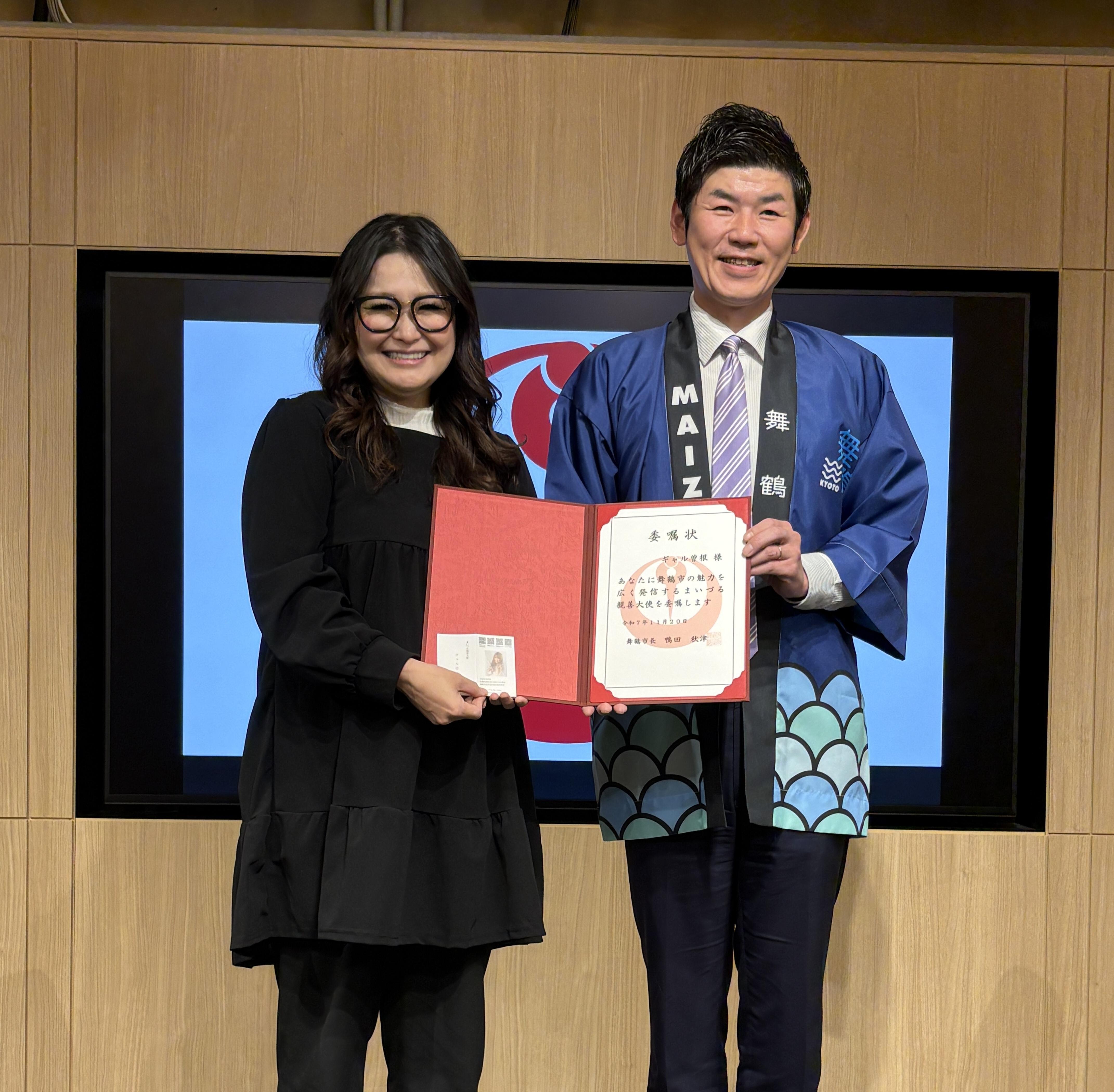 ご就任にあたり、11月20日に東京都内で就任式を開催し、舞鶴市長から委嘱状を授与。ギャル曽根さんからは「色んな人たちに舞鶴の美味しいものを知ってもらいたい」と抱負を語っていただきました。