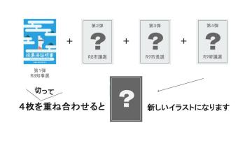 4回の選挙で配布される証明書を指定の位置で切って(折り曲げる)すべて重ね合わせると、新たな舞鶴の名所が完成する特別な仕掛けを施しています。